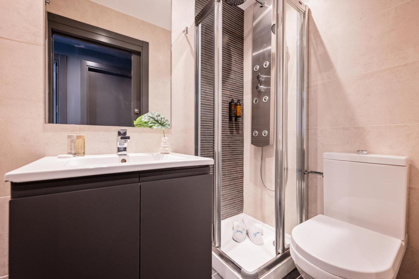 Apartamento de 3 dormitorios. Este apartamento cuenta con entrada privada, aire acondicionado, sala de estar, 3 dormitorios independientes y 2 baños con ducha y bidet. La cocina está equipada con placa de cocina, lavavajillas, utensilios de cocina y horno. El apartamento es amplio e incluye lavadora, cafetera, zona de estar, zona de comedor y TV de pantalla plana. La unidad ofrece 4 camas. ;