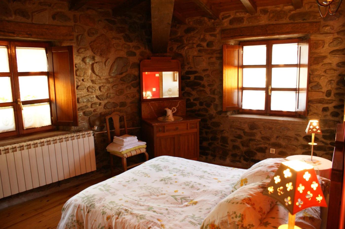 Habitación Doble con baño privado. The double room offers parquet floors and heating, as well as a private bathroom featuring a bath or a shower. Guests will find a stovetop, a refrigerator, a dishwasher and kitchenware in the fully equipped kitchen. The double room also provides guests with a barbecue. The double room provides a flat-screen TV, a tea and coffee maker, a dining area, a wardrobe as well as garden views. The unit offers 1 bed. ;